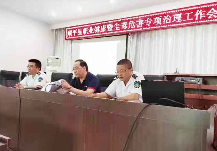 2019年7月10日我公司洪福磊和李雪峰到顺平组织开展了顺平县职业健康暨尘毒危害专项治理工作会议。
